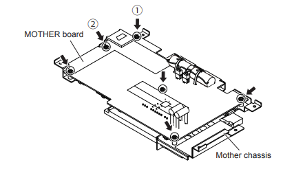 4. Remove the six PS3×8 screws that secure the motherboard to the motherboard chassis.
